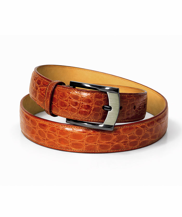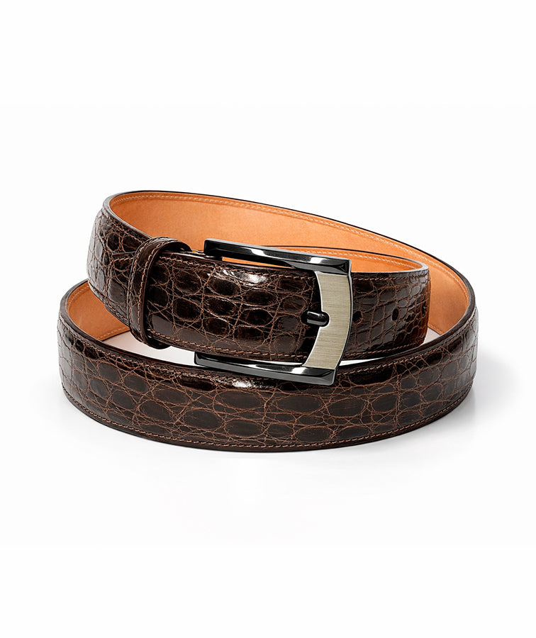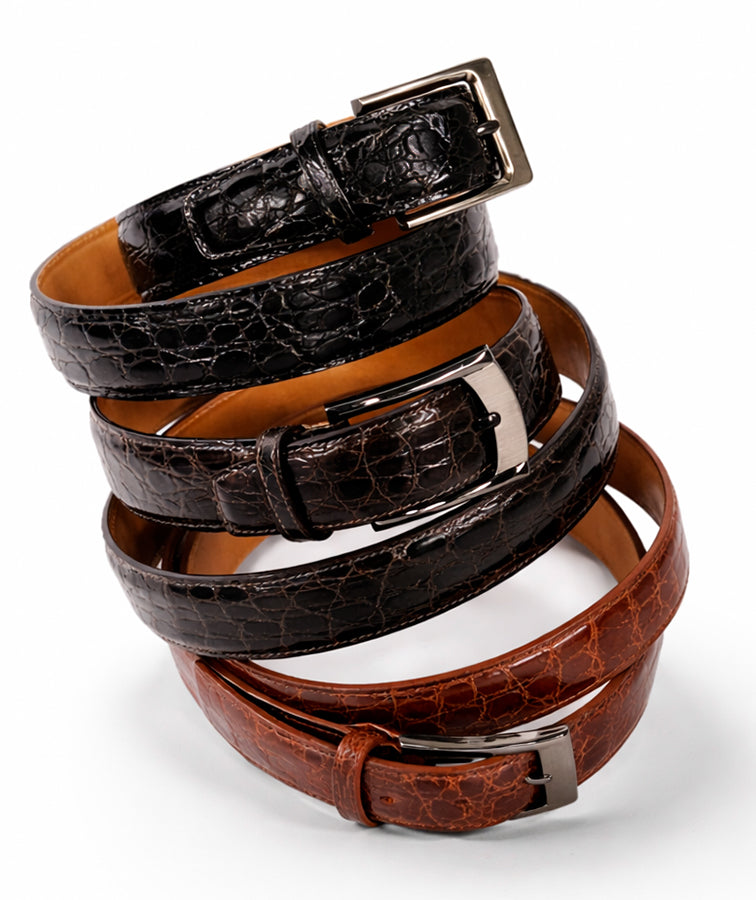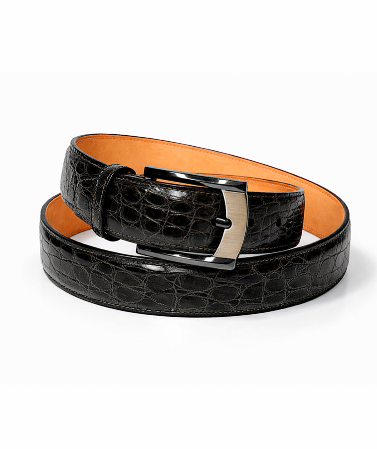 Our Perugia men's belt is styled in luxurious Crocodile Skin Flank with a Cowhide leather backing and nickel plated brass buckle. The Salerno is the ideal accessory for the well styled gentleman. Available in even sizes 30" to 44".